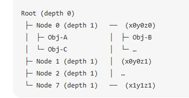 A computer memory tree that divides the game universe into cells. This helps the game engine quickly access which objects need to be processed at a player location. Instead of using a double float for 64 bit precision, the object's location is now handled by a memory tree.