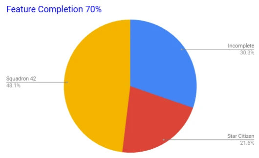 Completion for Star Citizen & Squardon 42 is scored based on a total of 104 features that were chosen to represent major gameplay milestones for both projects. The 104 features were selected from the official Stretch Goals.